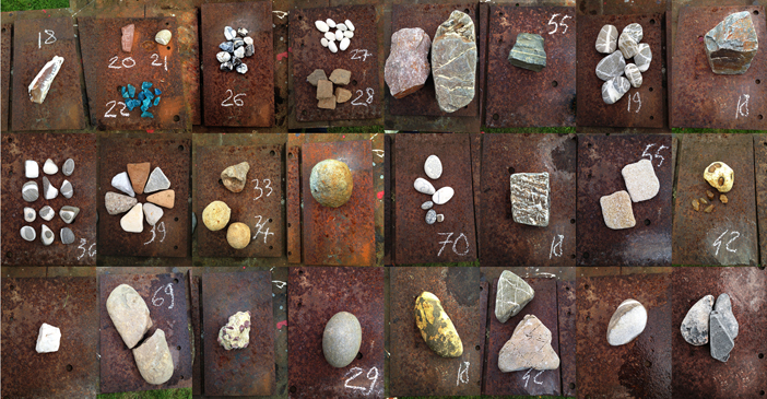 Installation pierre, fer, terre, verre (3 m X 2 m).